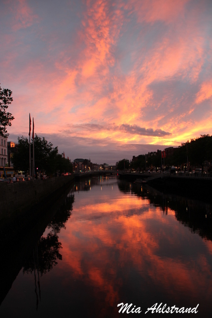 Liffey river som rinner genom staden. En fantastiskt vacker kväll!