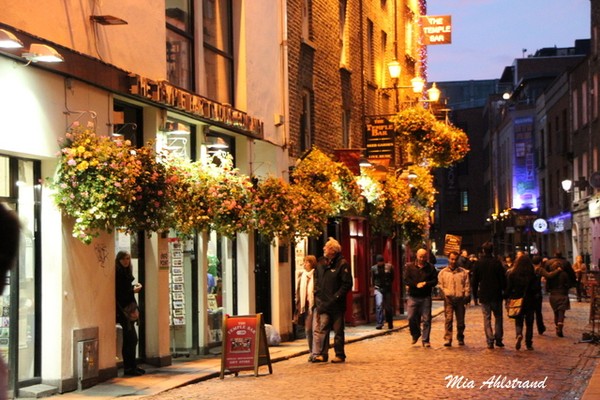 Temple Bar – ett område i Dublin med lite medeltidskänsla och fullsmockat av barer och pubar. En stor skillnad mot Medelhavsländerna är att här är man ute på pubarna redan vid 5-6 på eftermiddagen till långt in på nattten. Även restaurangerna var nästan fulla och svårt att få plats på om man kommer efter 7-tiden.