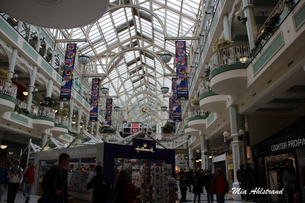 Stephen´s Green Shopping Centre med en enorm glasklocka högst upp. Annars var det mysígare att shoppa i de mindre affärerna utefter gatorna.