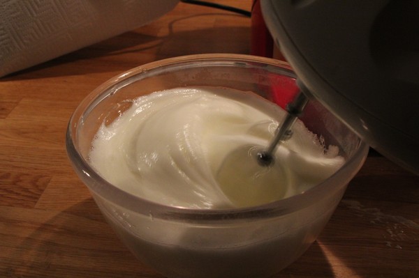 Vispa äggvitorna för sig och rör ned. Blanda ordentligt.