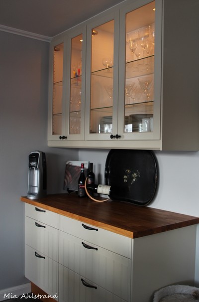 I köket fick den gamla svarta brickan från hans mormor ta plats. Där kan den stå både som prydnad och det blir lättare att komma ihåg att använda den när den står framme än bakom massa bråte på kontoret.