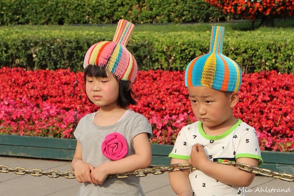 Barnen ser INTE glada ut och det är tveksamt om jag själv skulle skratta högt med den mössan på huvudet. Jo, det skulle jag nog 😉 Intressant att ha fått se iallafall en liten minidel av palatsen på Förbjudna staden 😉 Ha en skön fortsatt vecka där du är och vandrar !