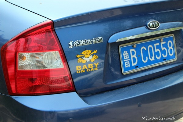 Vad roligt att få se fler bilder från Kina ! Tycker nog att "Baby on car" dekalen är lite liten för att synas. Jaså, de kör som galningar där också 😉