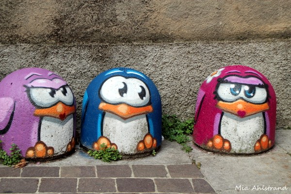 Målade pingviner hittar man lite överallt här. Visst blir man glad när man ser dem 🙂