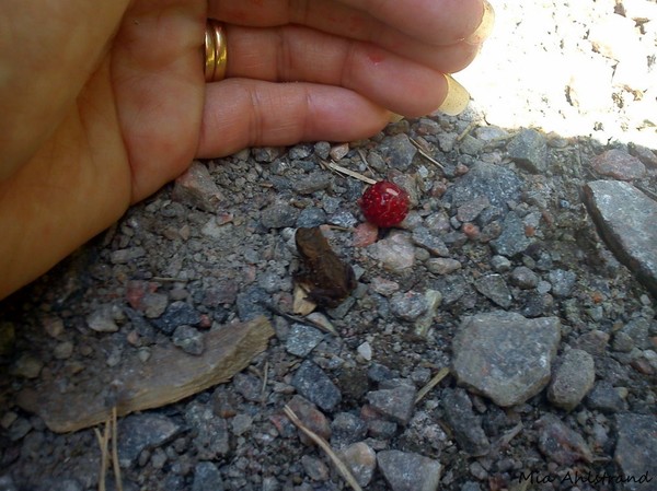 Hoppade omkring massor av små minigrodor, nästan lika små som smultronen. Ja dem kunde jag ju knappast vara rädd för 🙂