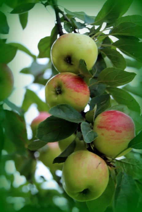 Skär de sköljda äpplena i bitar och blanda med vatten, vinsyra och natriumbensonat.