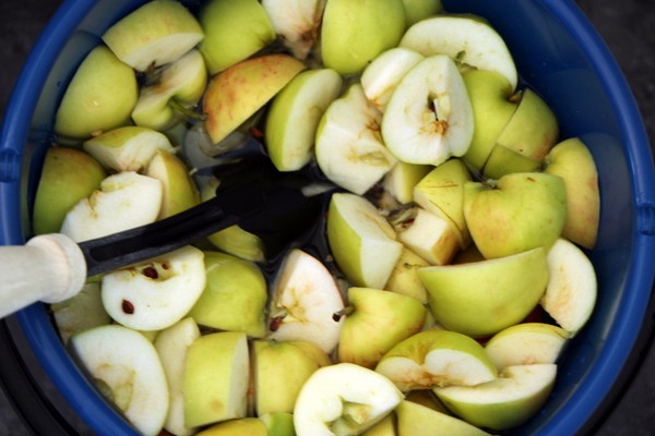 6 liter äppelbitar med skal 6 liter kallt vatten