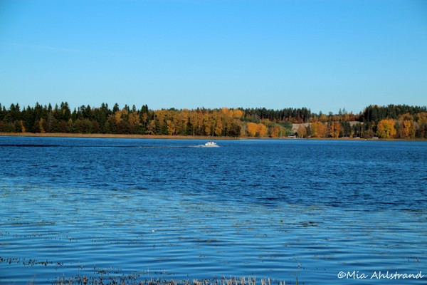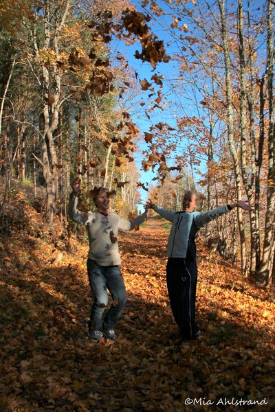 Tänk att det spelar nog ingen roll hur gammal man blir så blir man alltid lika glad av att kasta upp löven i luften :-)Höstfärgerna tillsammans med blått vatten är verkligen vackert!