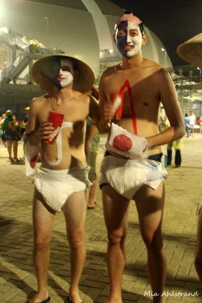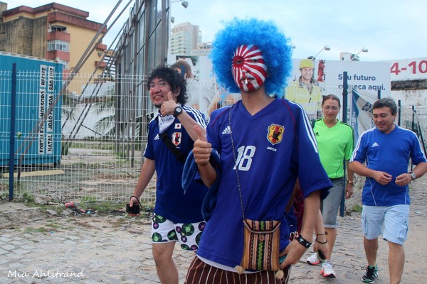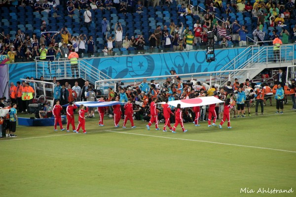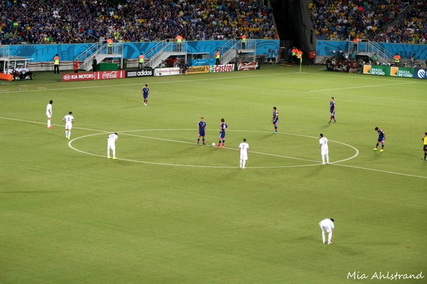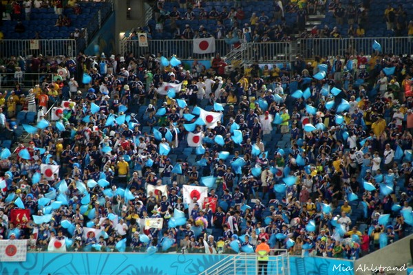 När väl matchen började så visst var det kul, men mycket roligare innan med all denna feststämning! Matchen i sig var ganska händelselös och slutade som alla fotbollsintresserade vet 0-0. Japan hade mer boll och fler chanser men inte så vassa chanser. När Grekland väl hade bollen var de riktigt duktiga och skapade en hel del farliga chanser. De var faktiskt värda ett mål. Dessutom spelade de mer än halva matchen med en spelare färre.