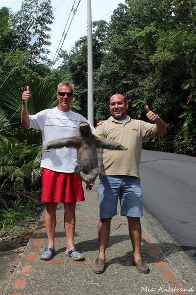 Vad häftigt att se en sengångare 🙂 Och mysigt med små apor som springer omkring på taken!