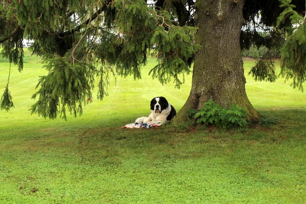 Vilken underbar kompis, kommer osökt att tänka på tjuren Ferdinand som var så snäll där han satt under korkeken och luktade på blommorna. Inte ofta man ser dessa St bernhardshundar, i alla fall inte här i mina trakter