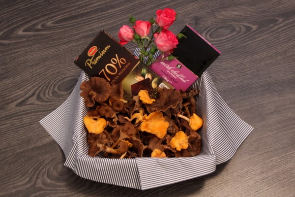 …och din pappa kan väl inte annat än att älska sin fina dotter. Nyplockad svamp, god mörk choklad och närhet. Vad kan man mer begära.