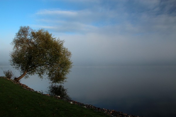 Så vackra bilder du tog på morgonkvisten. Vemodig skönhet, så passande. Älskar bilden på stenarna i det av dimma höljda vattnet.