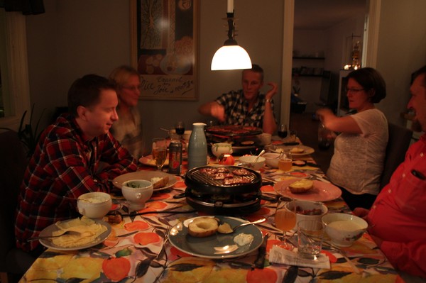 Middag med goa vänner har det också blivit. Käkade raclette, bra när gästerna får vara med och laga maten 🙂