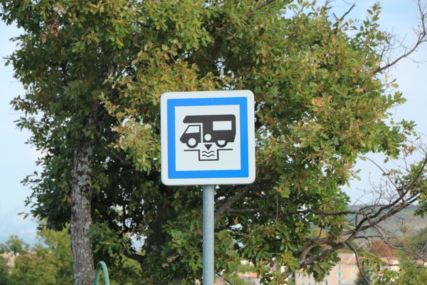 Sista skylten visar var man kan tömma toan i husbilen, eller husvagnen.