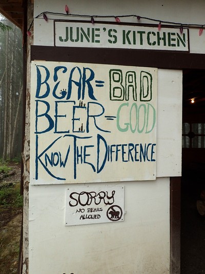 Haha! Gillar björnförbudskylten 🙂 Vi var till Alaska för ett par år sen, och fick inte se en endaste liten björn, trots att vi verkligen försökte. Suck. (Fast jag vill såklart se dom på ett säkert sätt, och inte bara springa på nån på en bar eller så… 😉 )