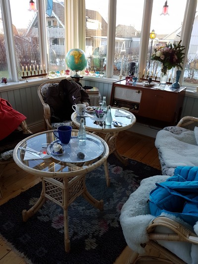 Caféet ser ut att ligga mitt i en villabebyggelse? Spännande, är det en villa som används som café? Många tycker att jag ska öppna trädgårdscafé här, det vore kanske en idé när barnen flyttat ut …