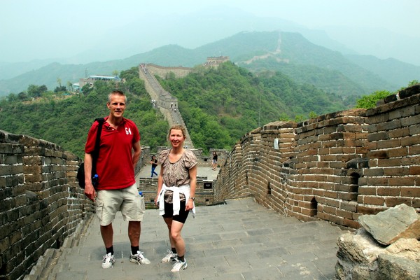 Här står vi uppe på Kinesiska muren, en riktigt mäktig känsla!
