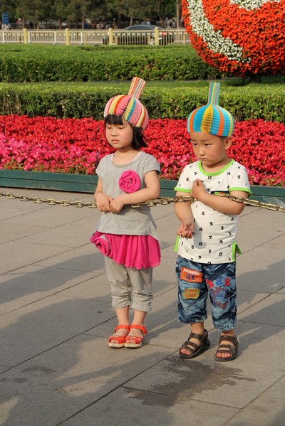 Stå här så vi kan fota er sa föräldrarna. Jippie så glada barnen blev 🙂 På Himmelska fridens torg.