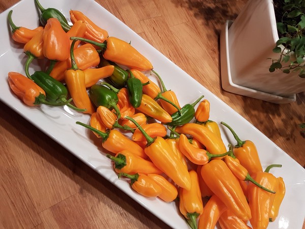 Läckert fat med chili, är det egen skörd? Jag hade en stor chiliplanta för flera år sedan och fick så stor skörd att jag klarar mig i många år framöver.