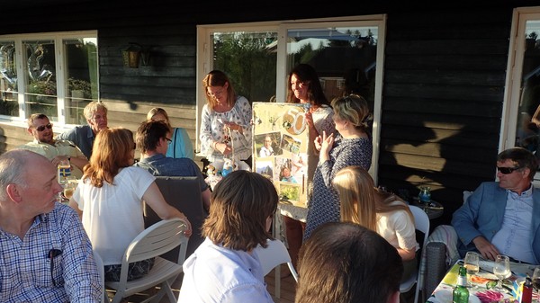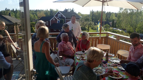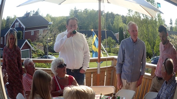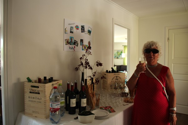 Vilket underbart firande – vilken härlig dag och kväll! Gillar verkligen att ni kunde sitta ute så länge, tänk så mycket det betyder. Och solglasögonen, så kul! Om tio år får du ha en bricka med läsglasögon istället …