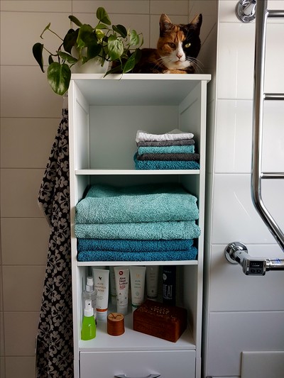 Visste faktiskt inte att du hade katt. Det måste jag ha missat… Är ingen kattmänniska och jag skulle nog inte vilja ha en katt ovanpå mina handdukar i badrummet;-)