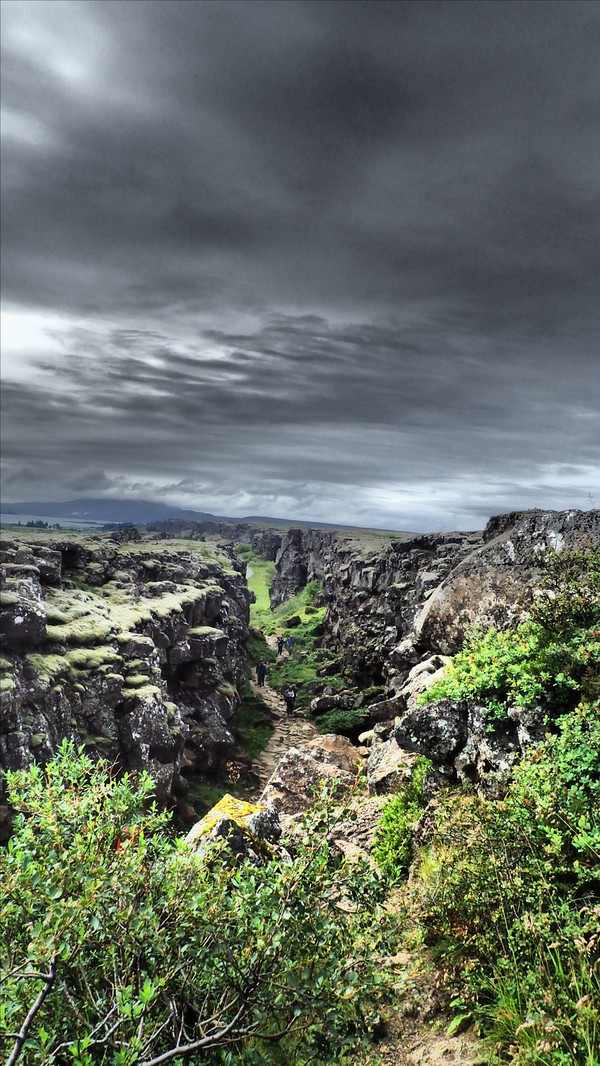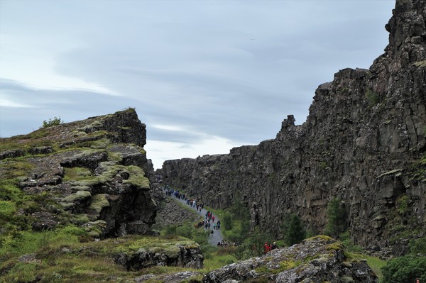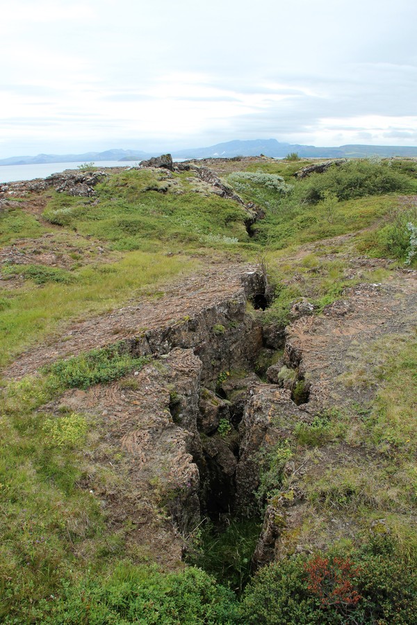 Men det mest spännande kanske ändå är att här möts den amerikanska och den europiska kontinentalplattan. Det är en stor lång ravin och massa små förkastningar mellan de båda plattorna. Sprickan blir några centimeter större för varje år.