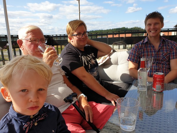 När vi kom tillbaka hem till oss hade övriga i familjen tagit sig dit och vi skålade och sjöng för mamma. Hon blev rejält överraskad.