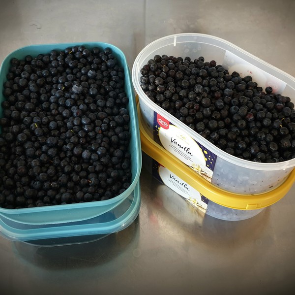 Har även provat att torka blåbär. Tog många timmar i ugnen. Har dem i en glasburk nu. Får se hur länge de håller. Men de är otroligt smakrika.