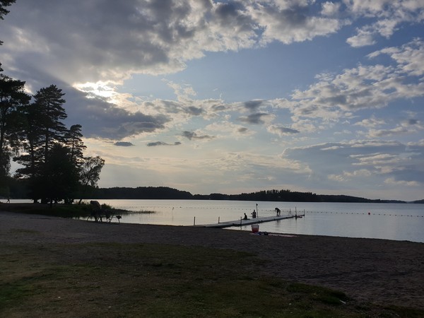 Nyss var sonen och jag ute och tog ett kvällsdopp. Jätteskönt!