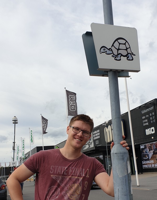 Sköldpadde-skylten blev förklarad, ser jag i kommentarerna. Tänker som BP: kul att se din son i bild 🙂