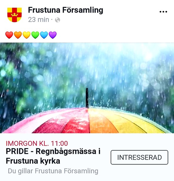 Har aldrig deltagit i Prideparad, men heder åt alla som gör det. Kram
