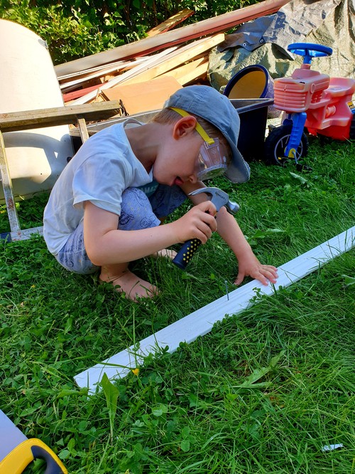 Oj, vilket jobb ni gjort i hettan. Och perfekt att ha koll på soltiderna för måla i solsken gör man ju helst inte. Fint med målar hjälp av både stora och små.