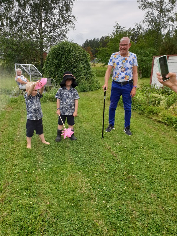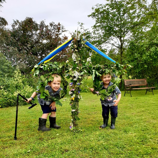 En typisk svensk Midsommar med andra ord – gummistövlar på hos Charles och Oliver – hahaha:-) Älskar den söta lilla midsommarstången och bilden du tog med killarna. såååå stora de har blivit. Tiden bara rusar tycker jag.