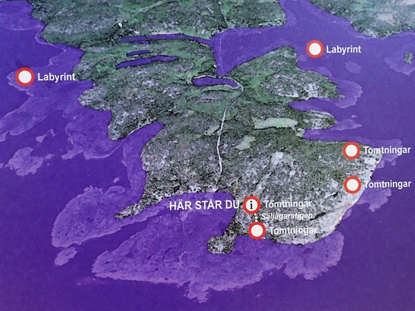 Här ute vid Skagsudde och Lotsstigen ser man tydligt på kartan hur det såg ut förr jämfört med skuggorna runt omkring som visar hur det ser ut idag. Det betyder också att havet blir grundare intill land. På vissa ställen kan båtarna inte ens åka in längre. Här fanns lotsarna som lotsade båtarna in i vikarna. Och än idag finn lotsen kvar på ett ställe här. Lotsarna har gett stigarna mellan vikarna namnet Lotsstigen.