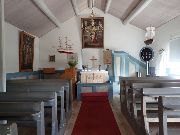 Väl tillbaka vid Skeppsmaln kikade vi in i det gamla kapellet som började byggas på slutet av 1700-talet men invigdes 1803.
