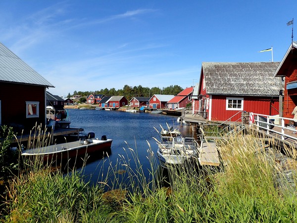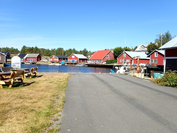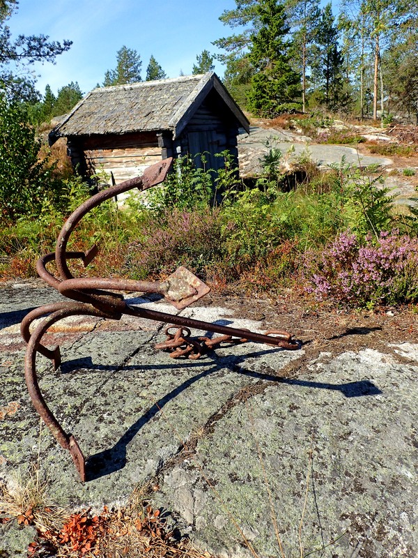 Inne vid Skeppsmaln. Här såg jag genast de små fiskebodarna, vattnet, gamla ankare och fisknät mm.
