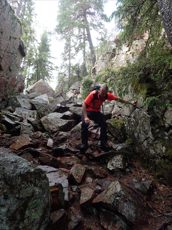 Här fick man klättra brant nerför på stora stenar/klippor. Det var ett tufft parti, inte helt lätt att ta sig fram.