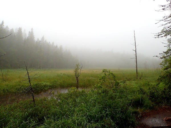 Småregnigt och dimmigt. Nästan lite trolsk stämning där i skogen.
