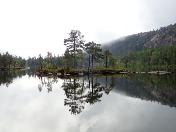 Detta är inte havet utan en liten tjärn vi passerade. Så stilla och fridfullt.