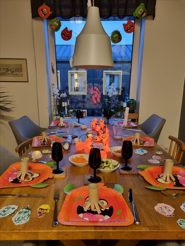 Så fint ni gjort till Halloween. Kul med gubbar i gurkor och morotsslantarna.