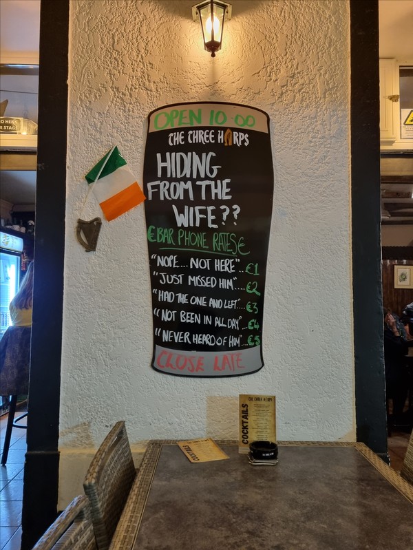 Hej, föll pladask för den irländska humorn! Och jag tror mig veta att det på Irland finns en och annan hustru som ringer o påminner pubägaren om att skynda på sin gubbe…