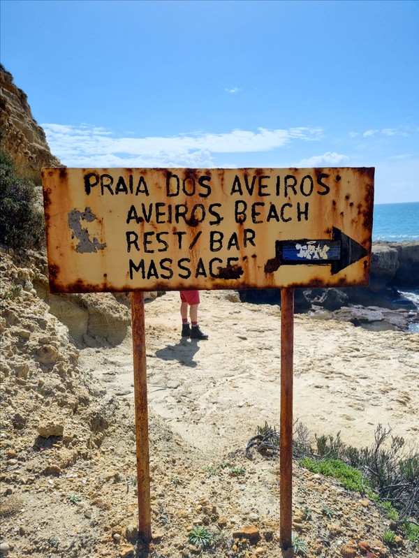 Den rostiga skylten vid stranden hade sin charm, men om den ska skylta kvalitén på restaurangen så är jg aningen tveksam.