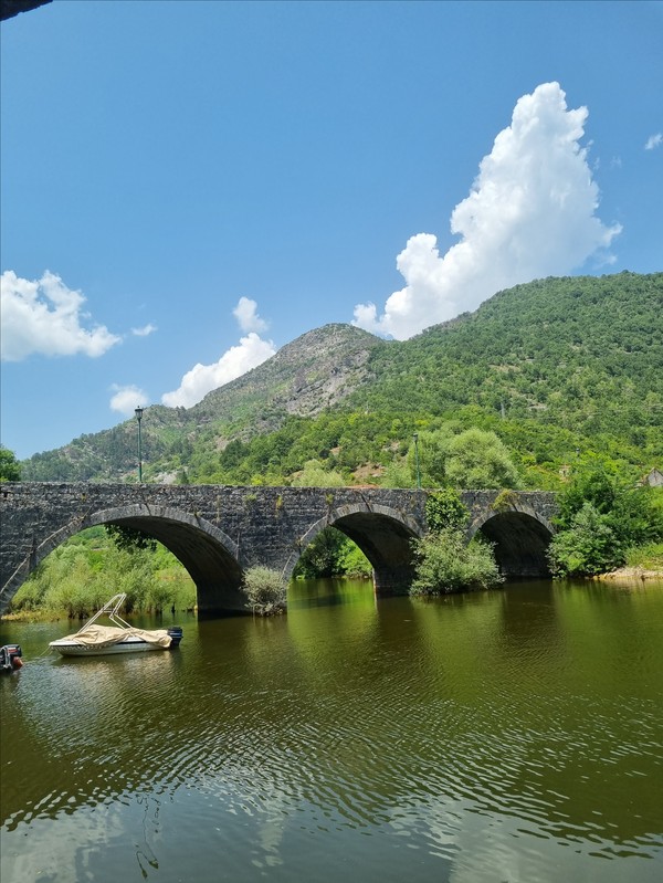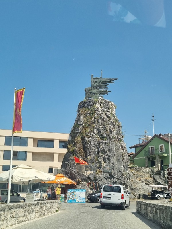 Åkte vidare till Rijeka Crnojevica. Nu blev vägarna mindre och ännu mer slingriga. En vacker gammal stenbro över ån. Strosade omkring och tog en glass att kyla ner oss med.