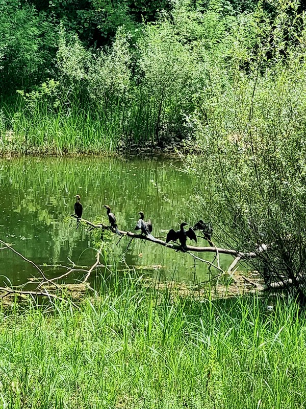 Några gamliknande fåglar, ingen aning vad det är för art. Floden här kommer från Skadarsjön som är hela Balkans största insjö. Ligger på gränsen mellan Montenegro och Albanien.