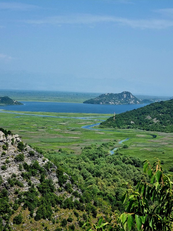 Här kör vi in i Virpazar. Här ska man kunna se Skadarsjön från sin bästa sida. Trettio sekunder efter denna bild är tagen är det fullständigt kaos, bilar överallt, vägen blir så smal så man inte kan mötas överallt, min man får backa i branta backar och när en bil passerar oss är det bara millimetrar mellan bilarna. Vi åker kanske en kilometer och det är likadant kaos överallt och till slut får vi nog och vänder bilen och åker därifrån. Tar en ännu mindre väg ner från bergen till kusten igen. Stannar och badar i Luchica. Åter igen får man köra en liten slibngrig väg från stora vägen ner till badet och åter igen är det lika svårt att hitta parkering. När vi väl lyckats var det väldigt skönt med ett dopp!