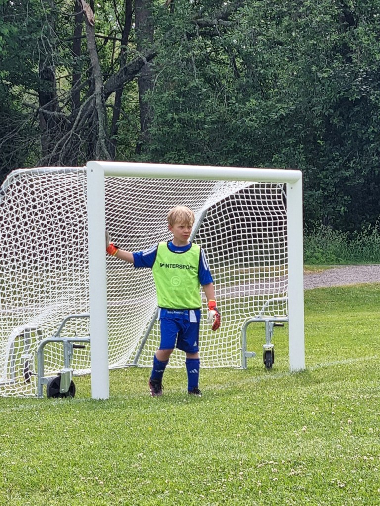 I år är det 5-mannafotboll som gäller för Charles. Oliver spelar fortfarande 3-manna men han får även hoppa in i Charles lag när de saknar folk. Han är tuff fast han möter de som är två år äldre. Här står Charles i mål. Oftast vill de flesta stå i mål och de turas om, just den här dagen ville ingen stå i mål. Min kära man släpade med två stolar till mig så jag kunde sitta på den ena och ha foten på den andra.