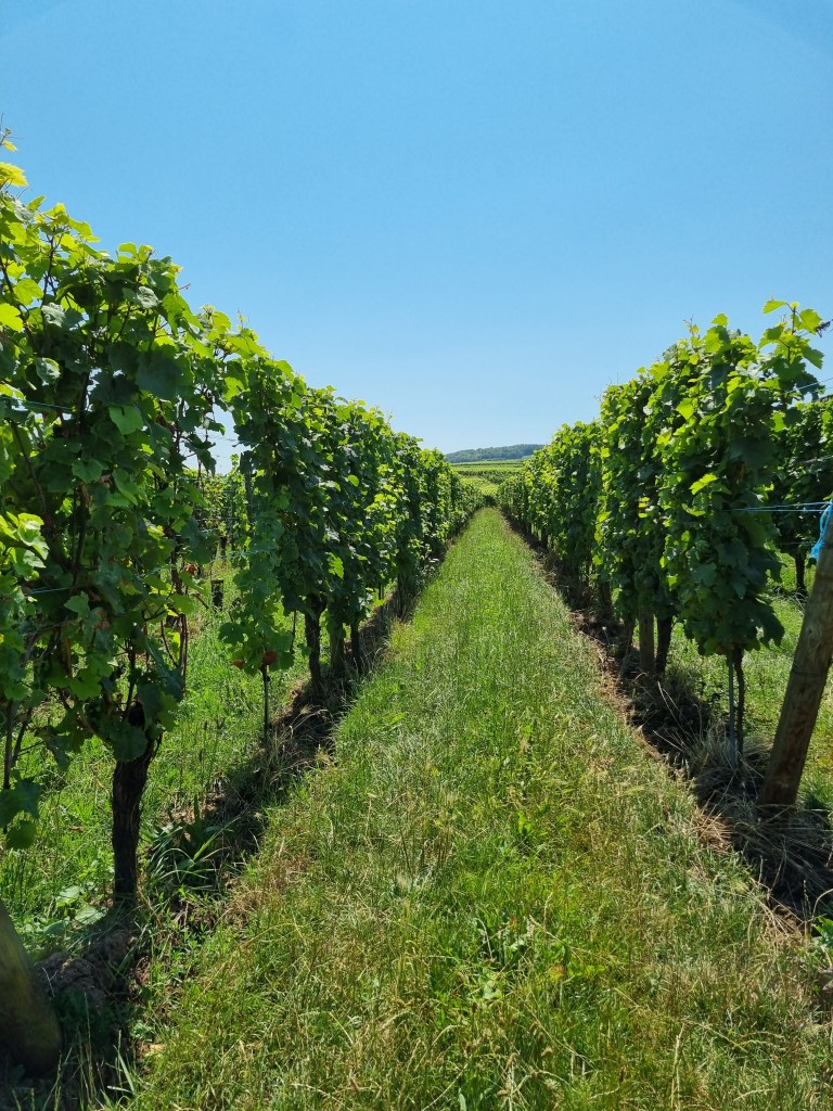 Man skördar normalt i september, så dessa druvor är inte mogna än. Dessutom har man helt andra sorter till vintillverkning mot de vi köper för att äta.