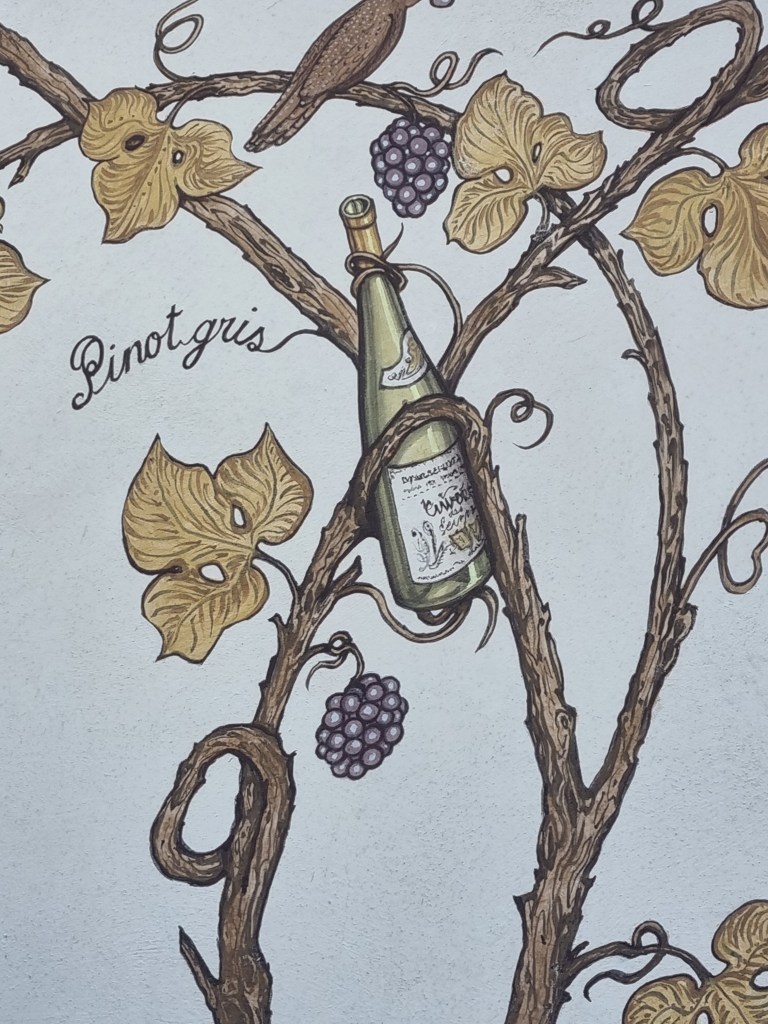 På väggen på vårt hotell fanns en målning av alla olika druvor man använder i Alsace.