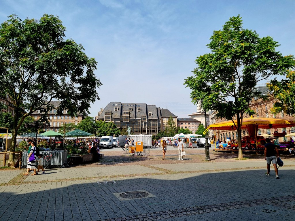 Här är ett annat stort torg, Place Broglie. Den franska nationalsången, Marseljäsen, spelades för första gången på detta torg i april 1792. Strasbourgs dåvarande borgmästare bad Rouget de Lisle att skriva en krigssång. Han skrev ihop låten i sitt hem på Place Broglie natten mellan 25 och 26 april 1792 och dagen efter överlämnade han låten till borgmästaren på torget.